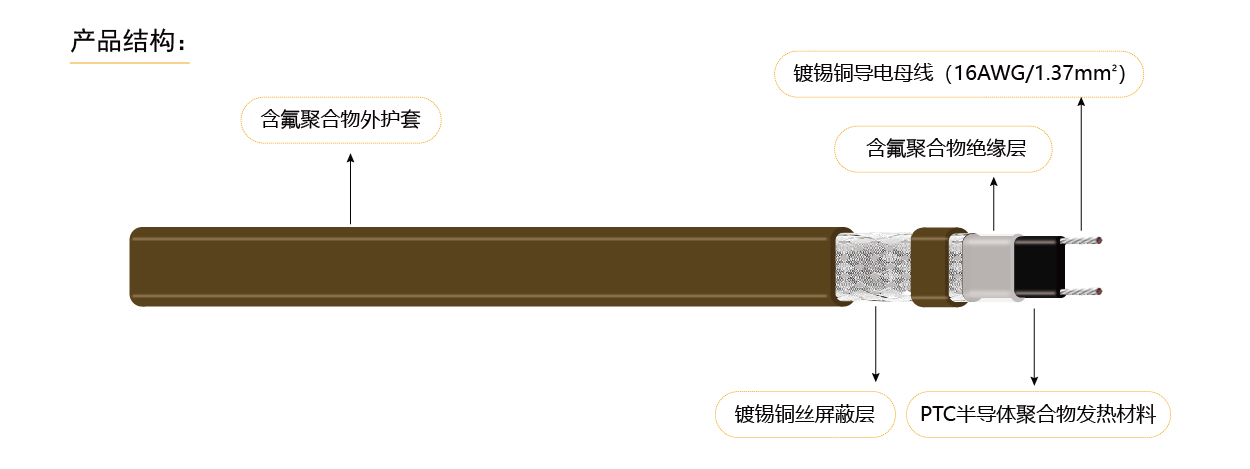 6、考虑机械强度,伴热电缆的导线截面至少为1mm2;